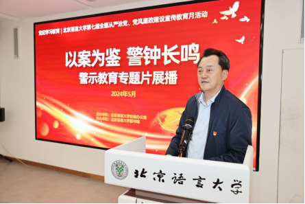 为扎实推进党纪学习教育,加强警示教育,让党员干部受警醒明底线知敬畏,5月10日下午,北语党纪学习教育读书班组织观看警示教育片《以案为鉴警钟长鸣》及《持续发力纵深推进》第一集《解决独有难题》。