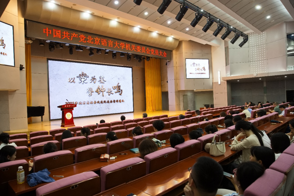 为深入学习贯彻习近平总书记关于党的自我革命的重要思想和二十届中央纪委三次全会精神,认真落实《北京语言大学党纪学习教育实施方案》等精神,进一步推动机关党纪学习教育工作走深走实,坚持一体推进党性党风党纪教育,学校机关党委于5月23日下午召开党员大会,集体观看警示教育专题片。党组织关系在机关的校领导学校党委副书记魏晖,党委常委、副校长张宝钧,党委副书记、纪委书记罗建晖和党委常委、党委统战部部长吕静,党委常委、党委组织部部长张健等近200名党员参加了学习。大会由机关党委书记李志坚主持。