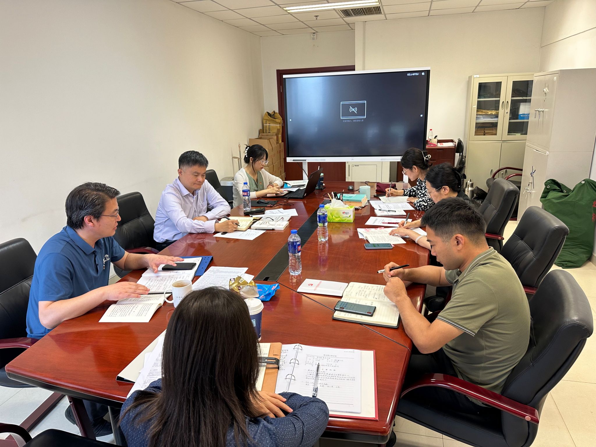为认真落实“第一议题”制度,扎实开展党纪学习教育, 5月24日上午,纪委办审计联合党支部召开全体党员大会,传达学习习近平总书记对学校思政课建设重要指示精神和新时代学校思政课建设推进会精神、全国高校毕业生等青年就业创业工作视频会议精神,深入开展了党纪学习教育专题研讨。党委副书记、纪委书记罗建晖参加学习研讨,审计处处长、支部书记江进主持会议,支部在校党员逐一发言,畅谈学习体会。
