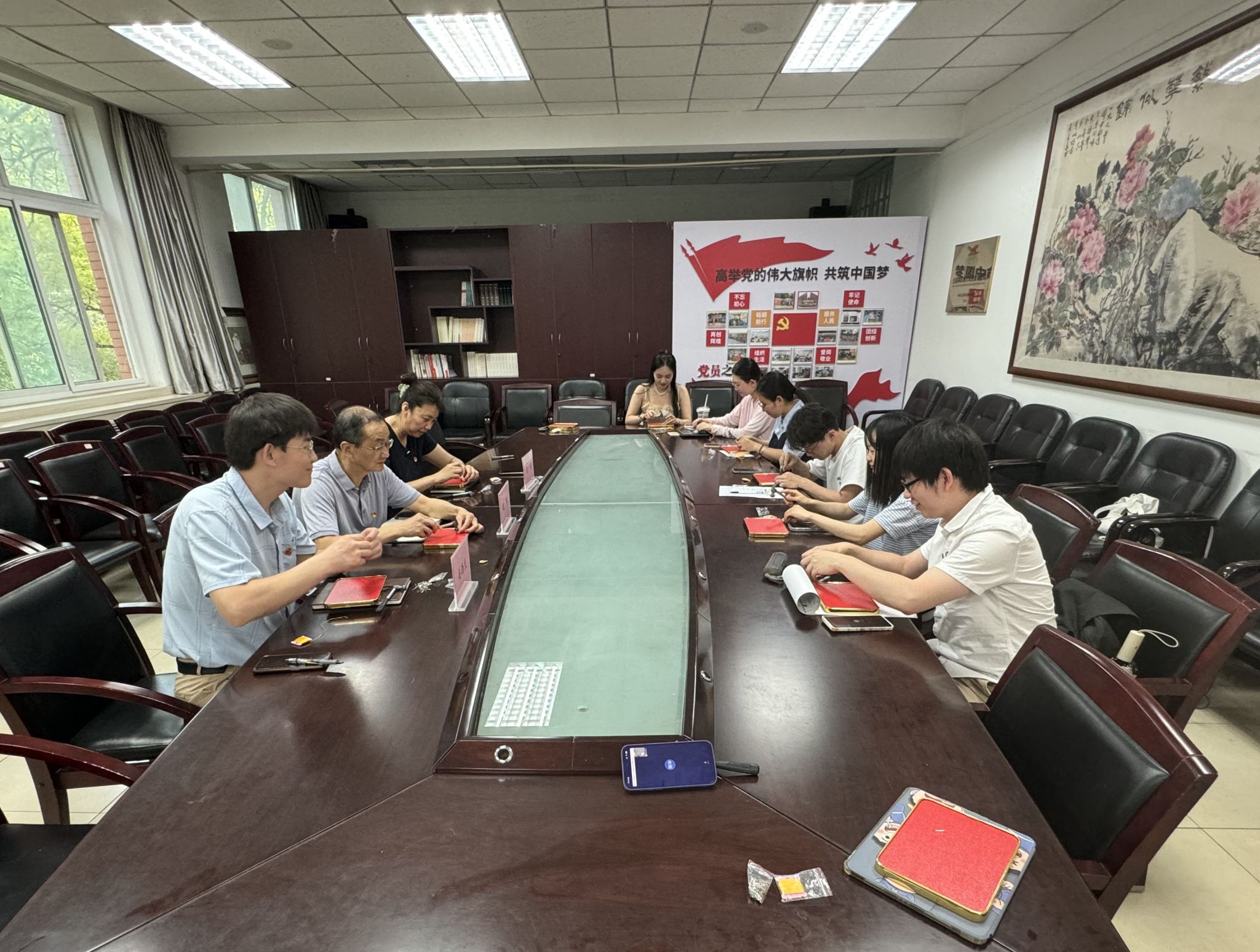 学习中,大家共同观看了《追寻习近平总书记的初心·正定篇》纪录片,深深地被习近平总书记“我将无我,不负人民”的赤诚情怀所打动。党员代表姚千娇、入党积极分子代表孙佳涛、发展对象代表李美琦也分别讲述了自己的入党初心。大家纷纷表示要将“小我”融入“大我”,把个人发展与国家发展紧密结合,努力建功新时代。随后,张嘉雯带领全体党员重温了入党誓词,并集体制作了党徽绕线画。
