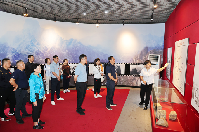 次日,研学团队前往爱国主义教育基地——狼牙山。1941年秋,五位八路军战士在这片险峰上与数百倍于己的敌人进行了殊死搏斗,最后弹尽粮绝,宁死不屈,毅然跳下悬崖,诠释了中华民族不屈不挠的抗战精神。他们的英勇事迹震撼着每个人的心灵。党员干部们重登红色遗址,重走英雄足迹,心中激荡着对先辈英烈的无限缅怀以及对祖国大好河山的真挚热爱,也深切体会到崇高的革命精神与今天幸福生活的来之不易。