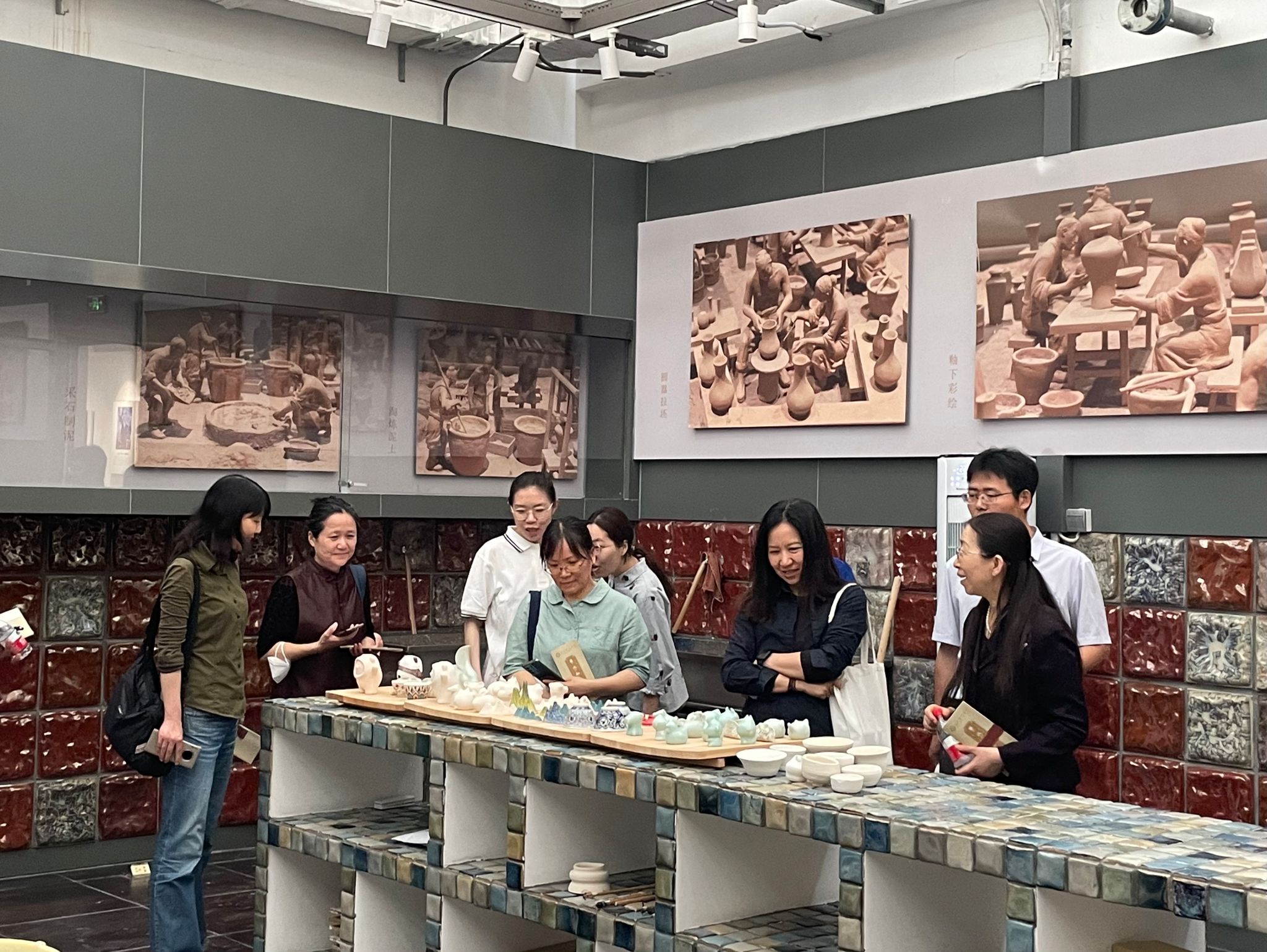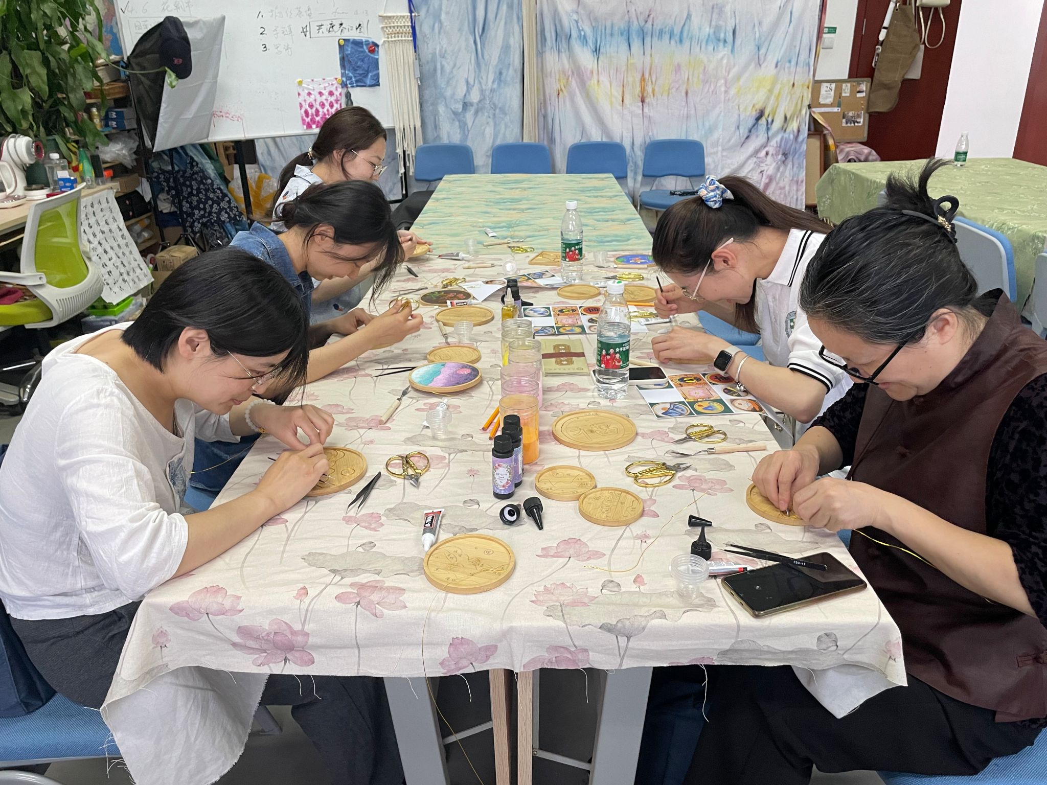 教师教育学院师生参观了华文学院“华文和乐雅”中华文化体验式教学中心,并参加了陶艺制作及掐丝珐琅现场体验活动。在文体教研室陶艺课及掐丝珐琅课老师的详细讲解及耐心指导下,大家亲身体验了手绘制陶盘、制作掐丝珐琅托盘等丰富有趣的沉浸式文创活动,进一步加深了对传统文化的理解。